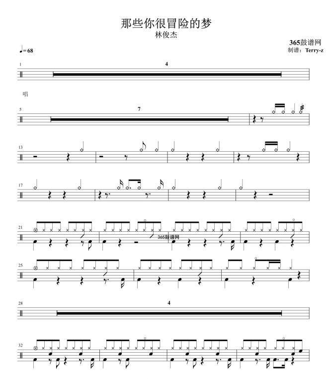 原创鼓谱 那些你很冒险的梦 鼓谱 架子鼓 高清鼓