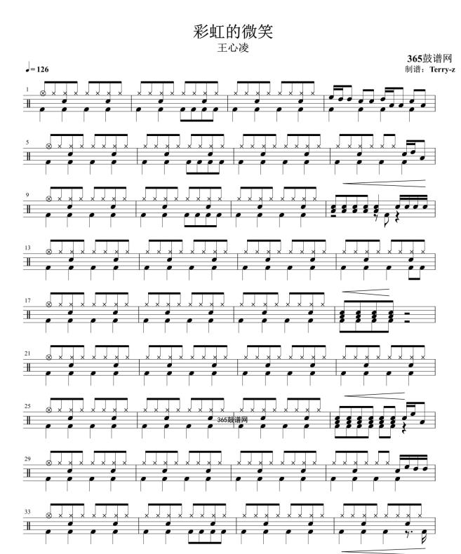 原创鼓谱 彩虹的微笑 鼓谱 架子鼓 高清鼓谱PDF
