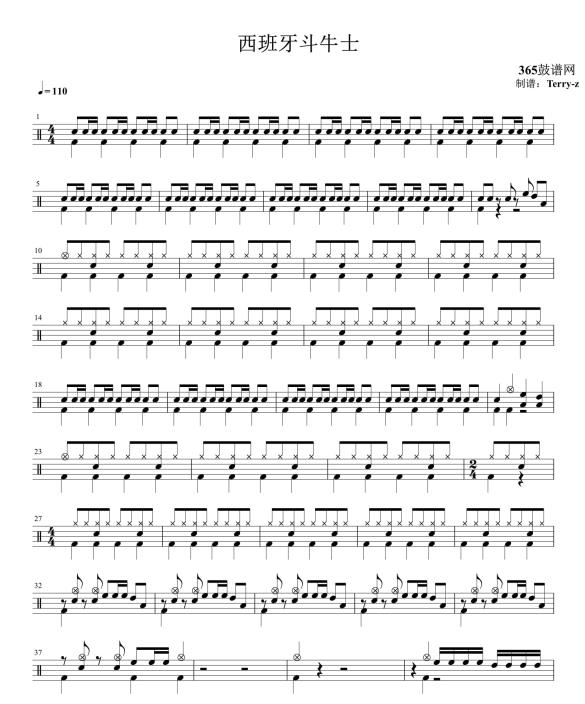 原创鼓谱 西班牙斗牛曲 鼓谱 架子鼓 高清鼓谱PDF