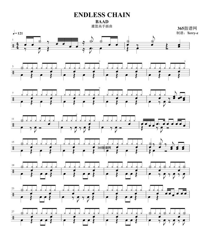 原创鼓谱 ENDLESS CHAIN 鼓谱 架子鼓 高清鼓谱PDF