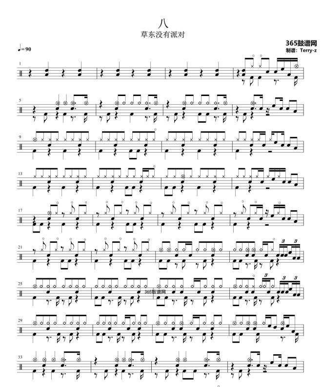 原创鼓谱 八 草东没有派对 鼓谱 架子鼓 高清鼓谱PDF
