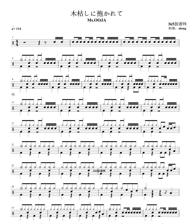 原创鼓谱 木枯しに抱かれて 鼓谱 架子鼓 高清鼓谱PDF