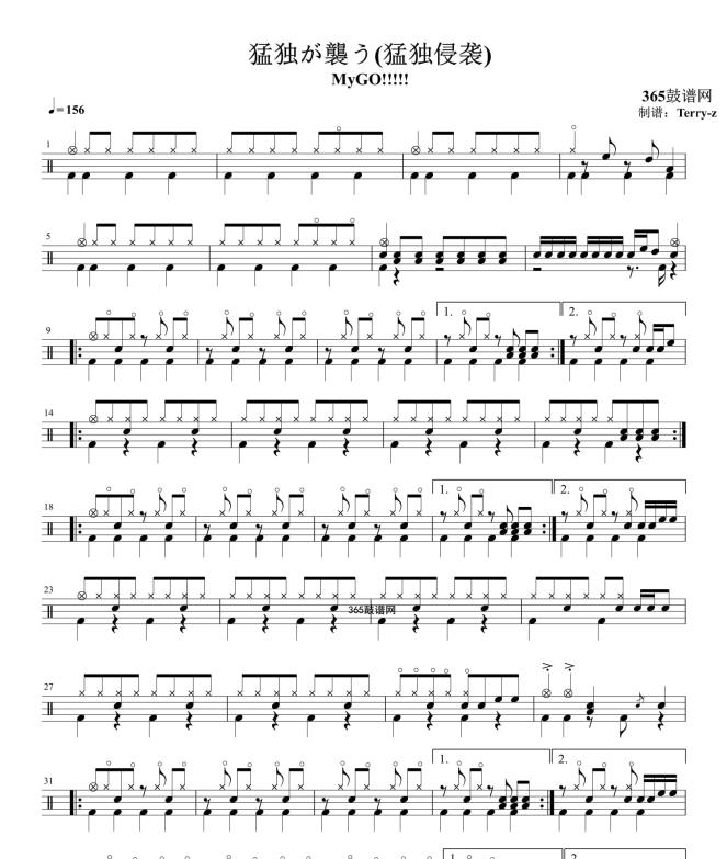 原创鼓谱 猛独が襲う(猛独侵袭) 鼓谱 架子鼓 高清鼓谱PDF