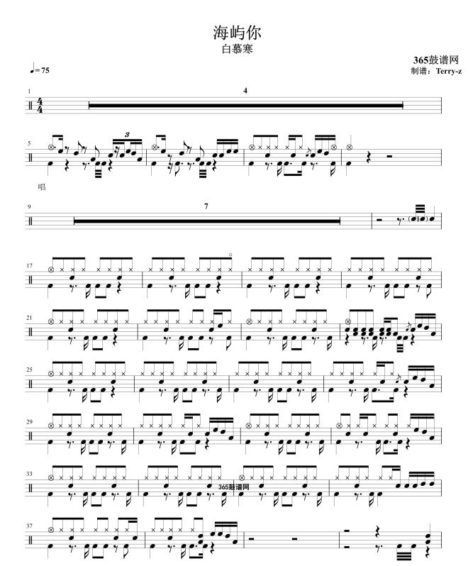 原创鼓谱 海屿你 鼓谱 架子鼓 高清鼓谱PDF