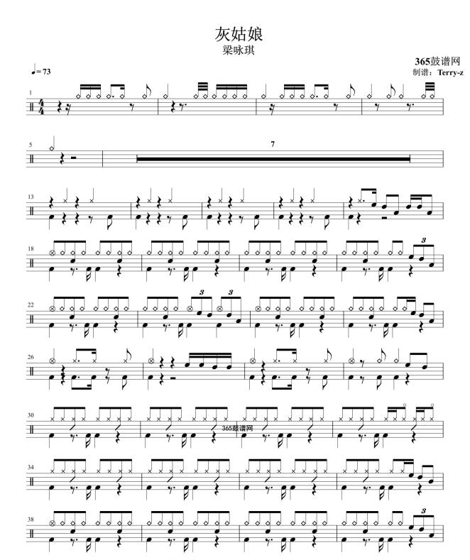 原创鼓谱 灰姑娘 鼓谱 架子鼓 高清鼓谱PDF