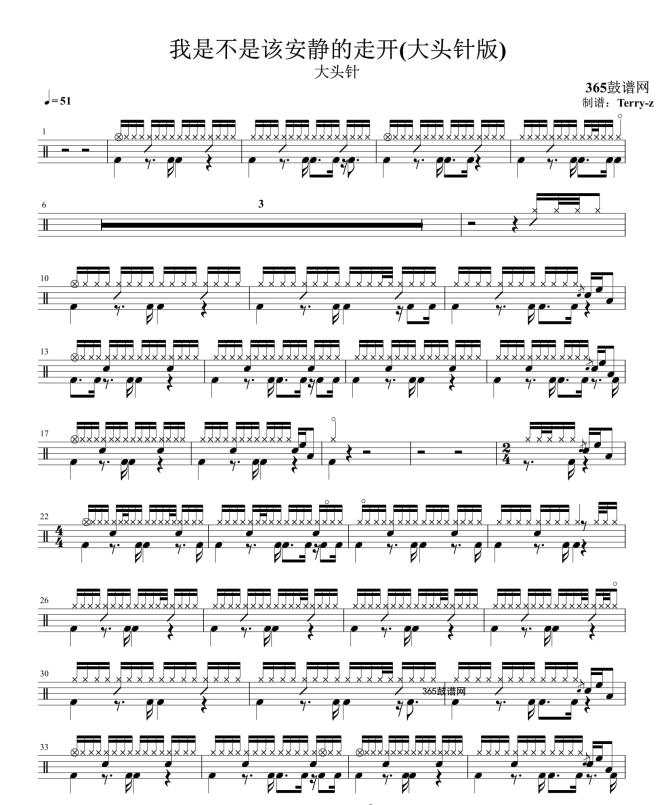 原创鼓谱 我是不是该安静的走开(大头针版) 鼓谱