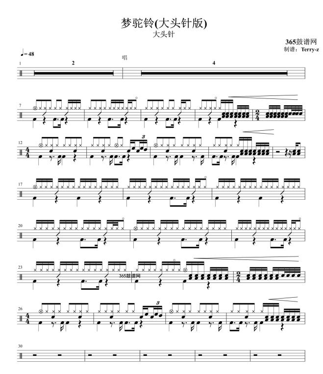 原创鼓谱 梦驼铃(大头针版) 鼓谱 架子鼓 高清鼓