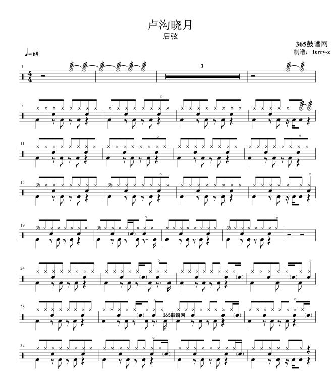 原创鼓谱 卢沟晓月 鼓谱 架子鼓 高清鼓谱PDF