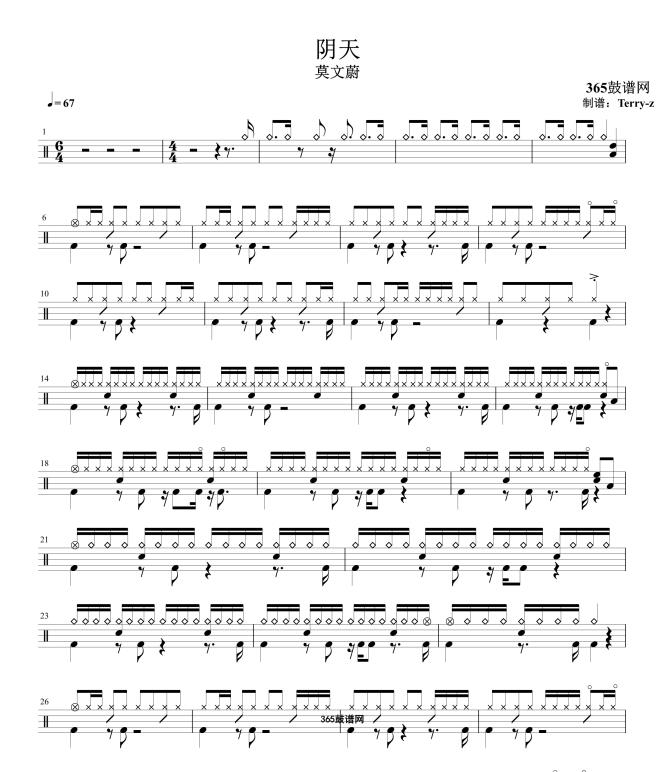 原创鼓谱 阴天 鼓谱 架子鼓 高清鼓谱PDF
