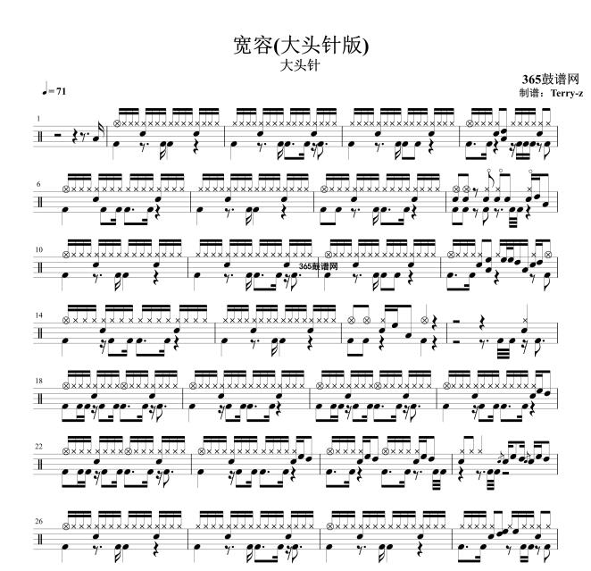 原创鼓谱 宽容(大头针版) 鼓谱 架子鼓 高清鼓谱