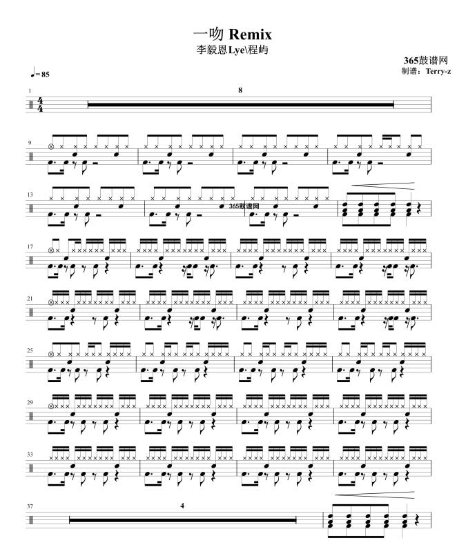 原创鼓谱 一吻 Remix 鼓谱 架子鼓 高清鼓谱PDF