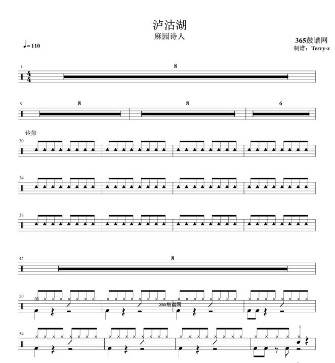 原创鼓谱 泸沽湖 鼓谱 架子鼓 高清鼓谱PDF