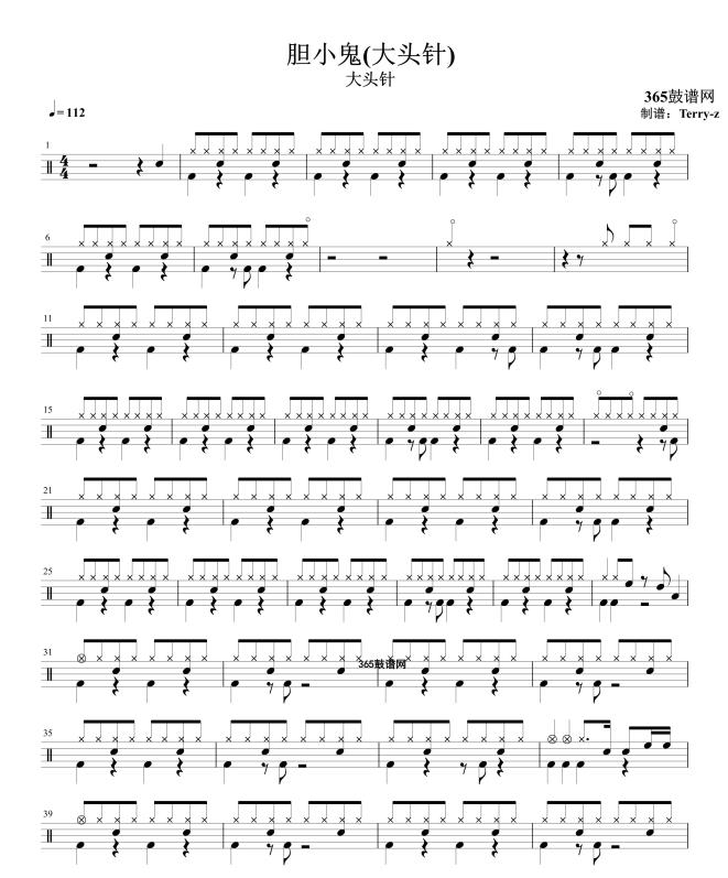 原创鼓谱 胆小鬼(大头针) 鼓谱 架子鼓 高清鼓谱