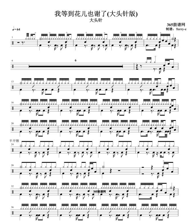 原创鼓谱 我等到花儿也谢了(大头针版) 鼓谱 架子