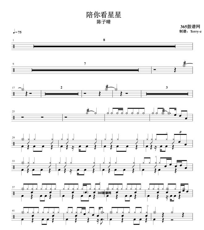 原创鼓谱 陪你看星星 鼓谱 架子鼓 高清鼓谱PDF