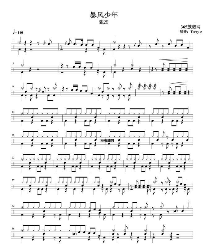 原创鼓谱 暴风少年 鼓谱 架子鼓 高清鼓谱PDF