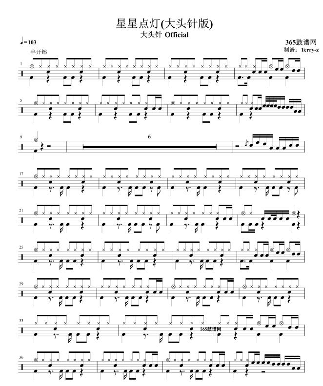 原创鼓谱 星星点灯(大头针版) 鼓谱 架子鼓 高清