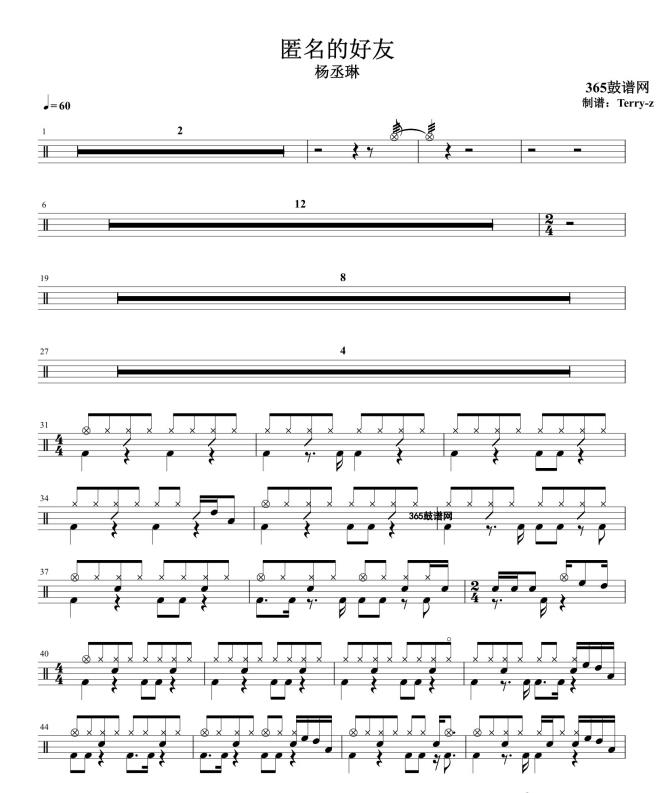 原创鼓谱 匿名的好友 鼓谱 架子鼓 高清鼓谱PDF