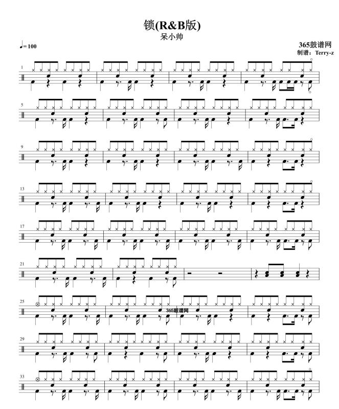 原创鼓谱 锁(R&B版) 鼓谱 架子鼓 高清鼓谱PDF