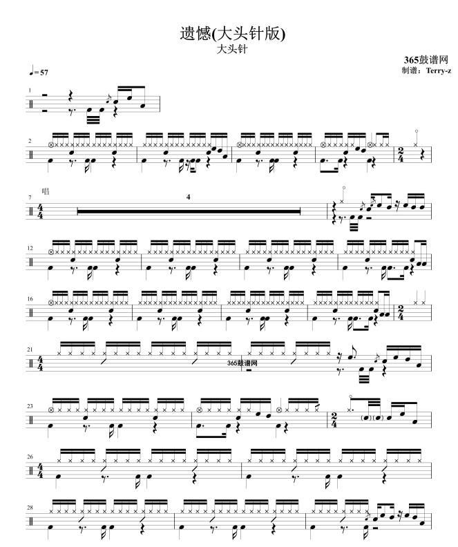 原创鼓谱 遗憾(大头针版) 鼓谱 架子鼓 高清鼓谱