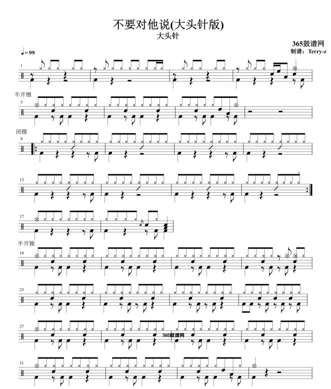 原创鼓谱 不要对他说(大头针版) 鼓谱 架子鼓 高