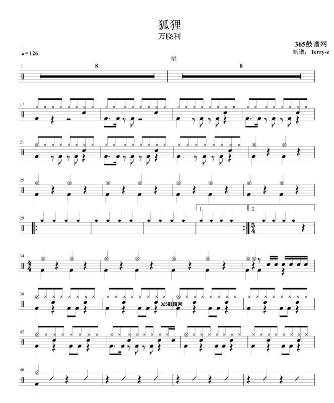 原创鼓谱 狐狸 鼓谱 架子鼓 高清鼓谱PDF