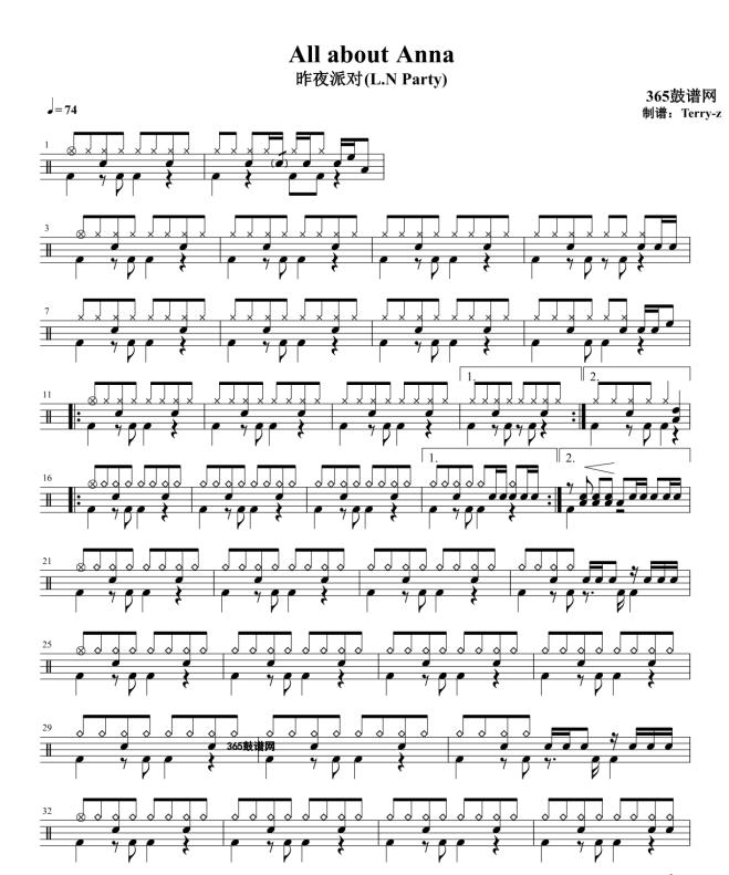原创鼓谱 All about Anna 鼓谱 架子鼓 高清鼓谱PDF