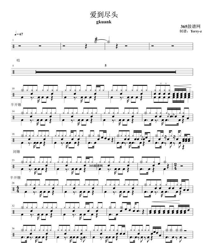 原创鼓谱 爱到尽头 鼓谱 架子鼓 高清鼓谱PDF