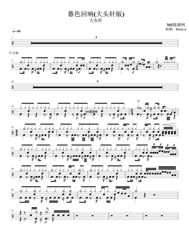 原创鼓谱 暮色回响(大头针版) 鼓谱 架子鼓 高清