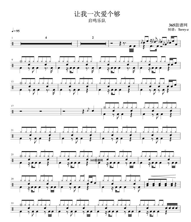 原创鼓谱 让我一次爱个够 启鸣乐队 鼓谱 架子鼓