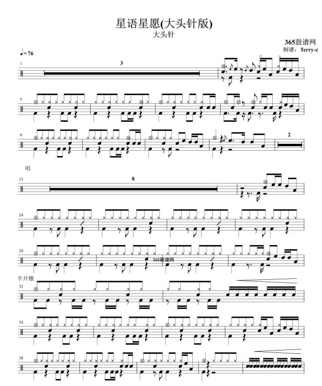 原创鼓谱 星语星愿(大头针版) 鼓谱 架子鼓 高清