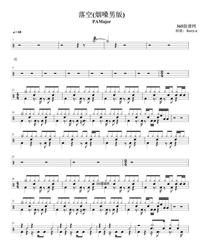 原创鼓谱 落空(烟嗓男版) 鼓谱 架子鼓 高清鼓谱