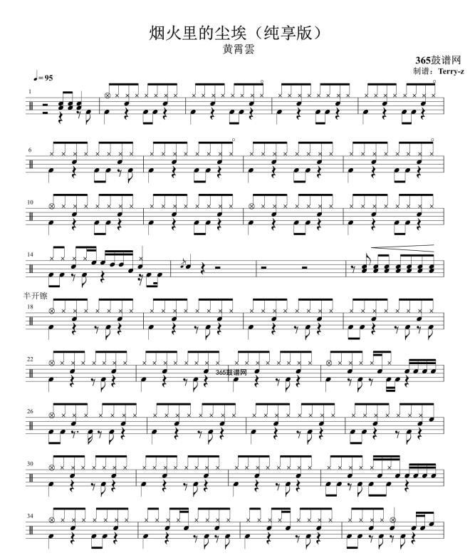 原创鼓谱 烟火里的尘埃(纯享版) 鼓谱 架子鼓