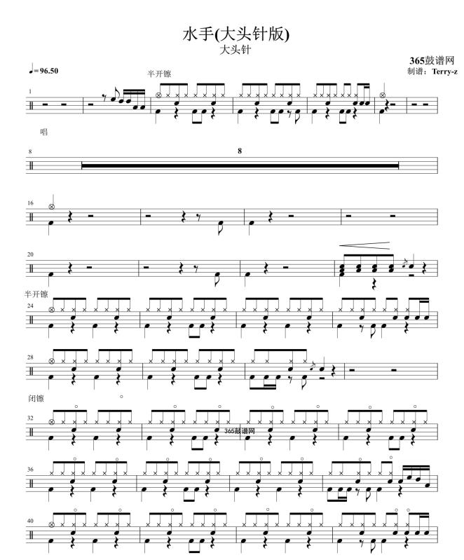 原创鼓谱 水手(大头针版) 鼓谱 架子鼓 高清鼓谱