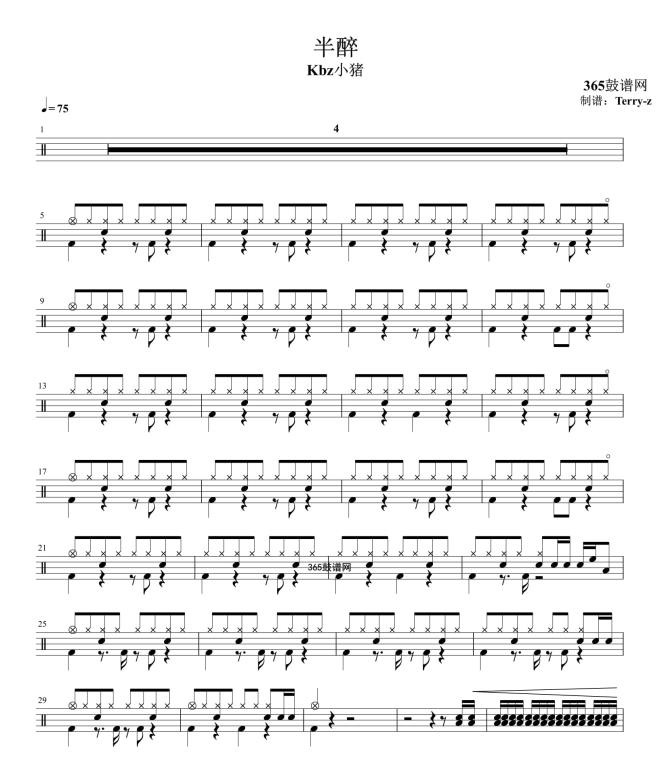 原创鼓谱 半醉 Kbz小猪 鼓谱 架子鼓 高清鼓谱PD