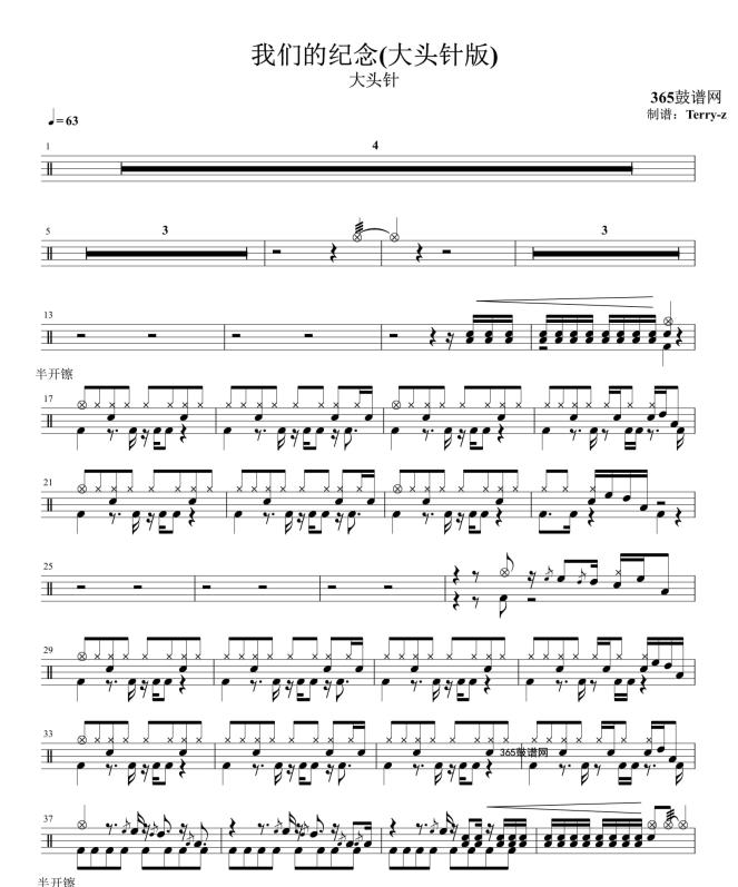 原创鼓谱 我们的纪念(大头针版) 鼓谱 架子鼓 高